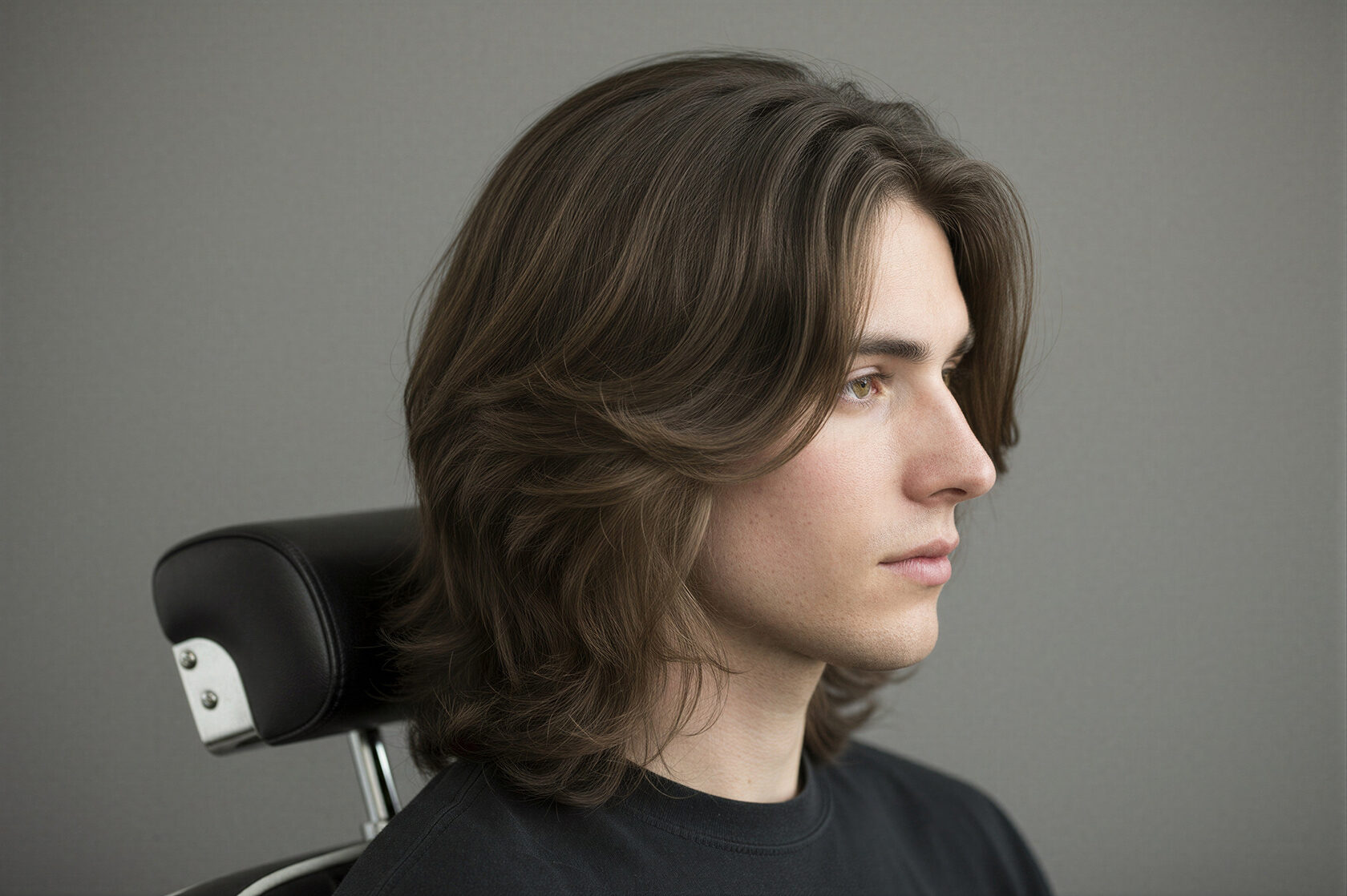 Прическа с аккуратным переходом от коротких волос к длинным. В 2026 году тенденция к мягким вариантам без резкого контраста. Стрижка подходит большинству мужчин и без проблем адаптируется под любой образ.